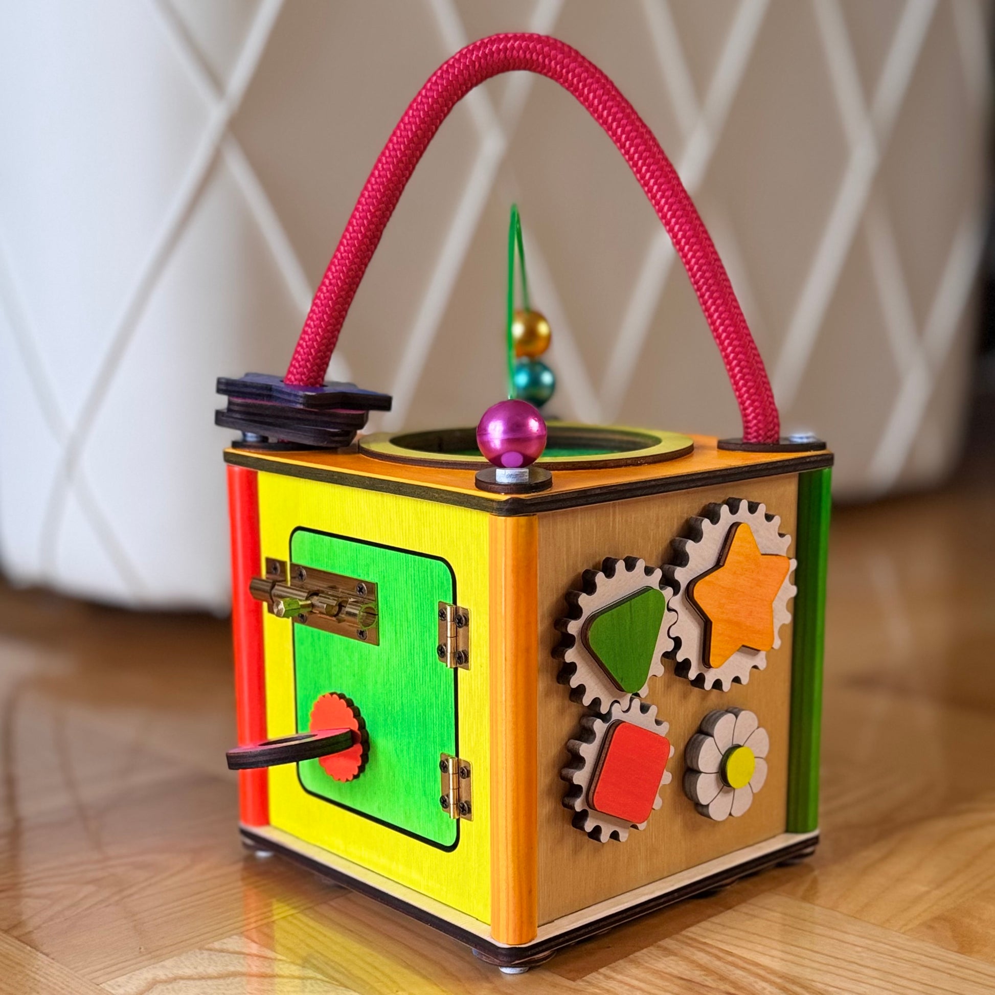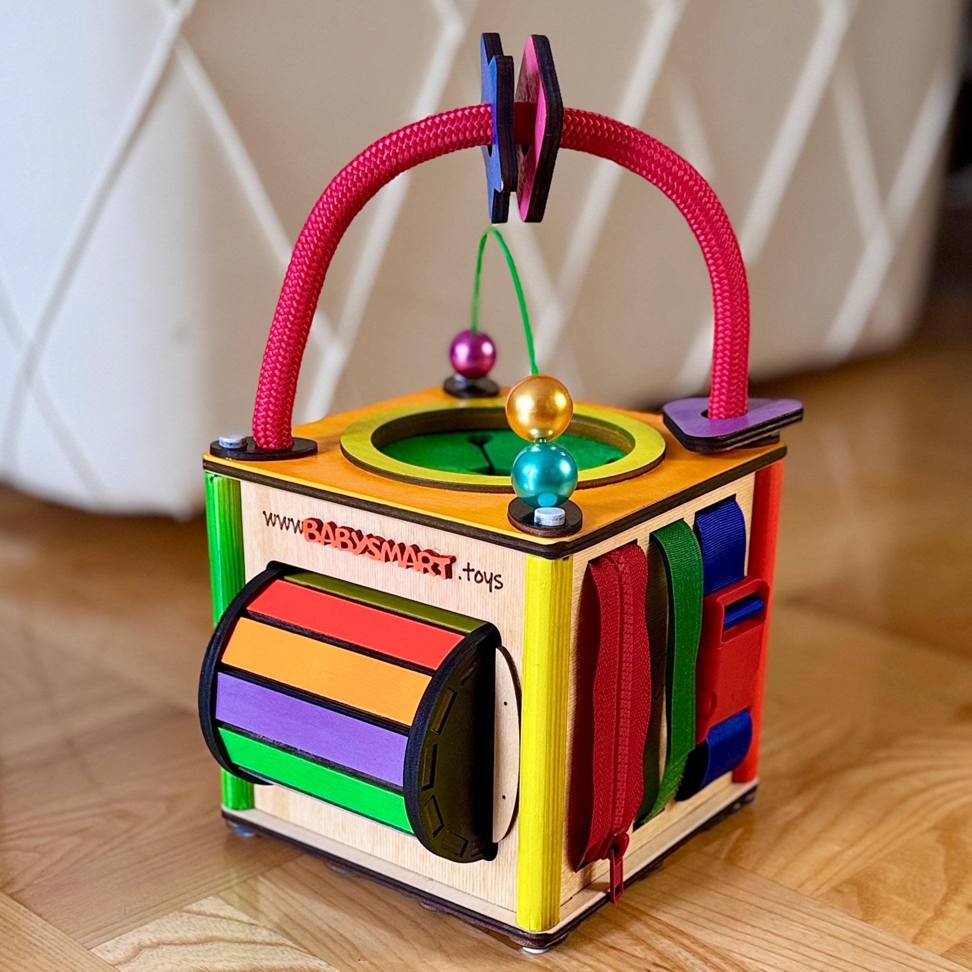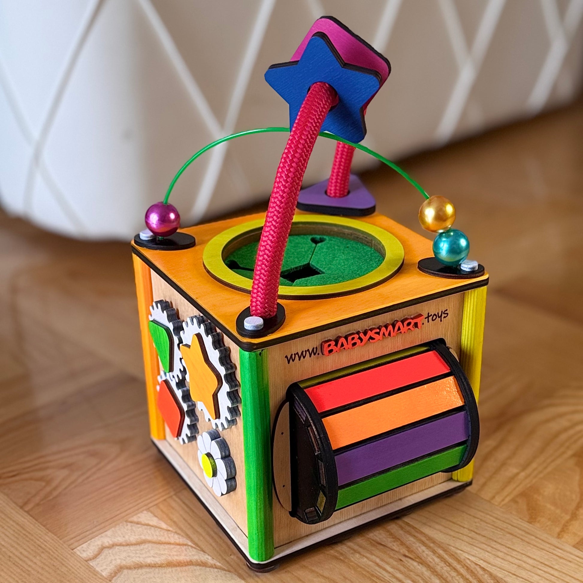 Babysmart montesori kocka ručno je izrađena od skupocenih i potpuno bezbednih materijala, sa pažnjom posvećenom svakom detalju. Žive i vesele boje stimulišu čula deteta, dok raznovrsni elementi zadržavaju pažnju i podstiču razvoj.