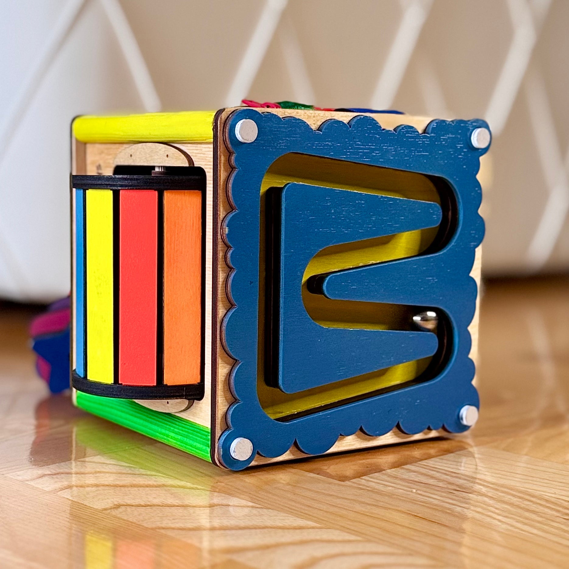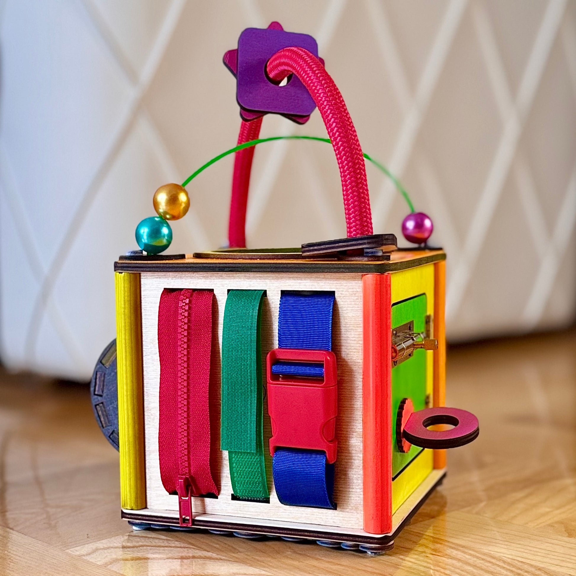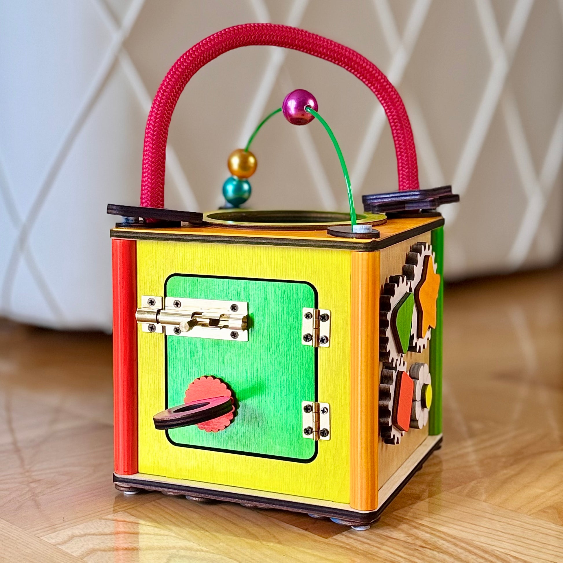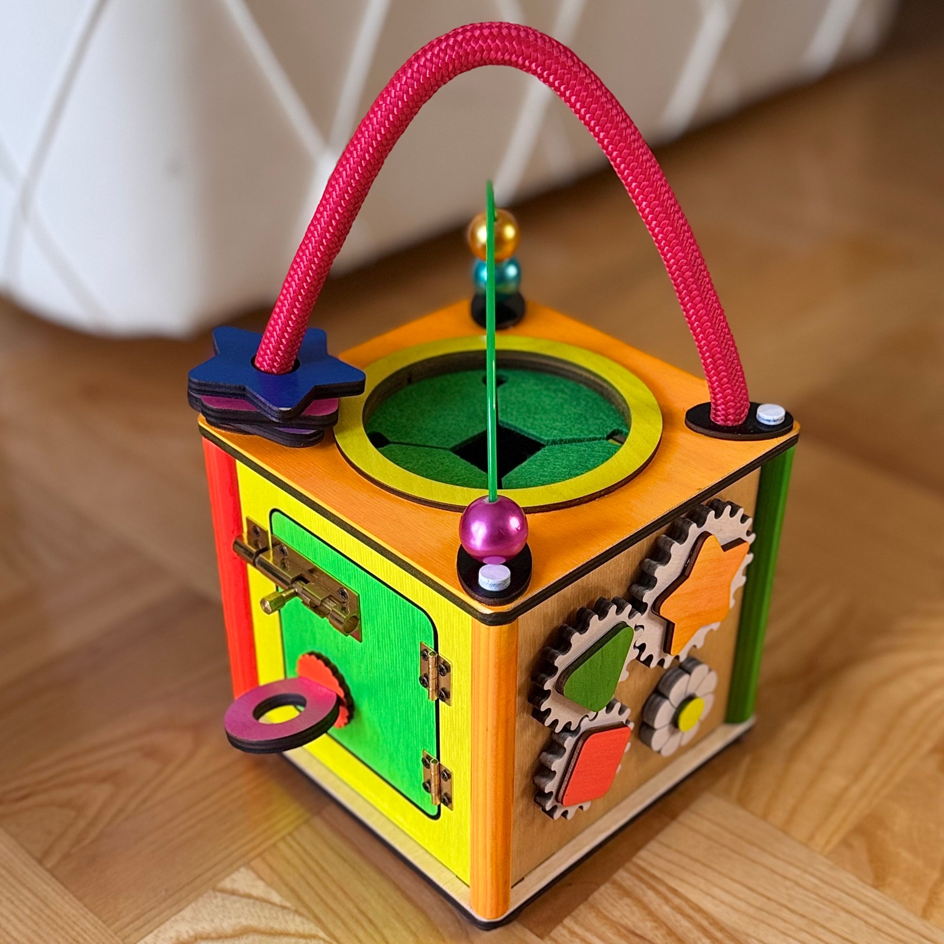 Babysmart montesori kocka ručno je izrađena od skupocenih i potpuno bezbednih materijala, sa pažnjom posvećenom svakom detalju. Žive i vesele boje stimulišu čula deteta, dok raznovrsni elementi zadržavaju pažnju i podstiču razvoj.