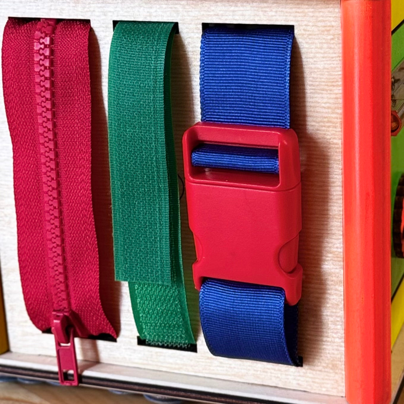 • rajsferšlus, čičak i kopča za vežbanje sitne motorike,