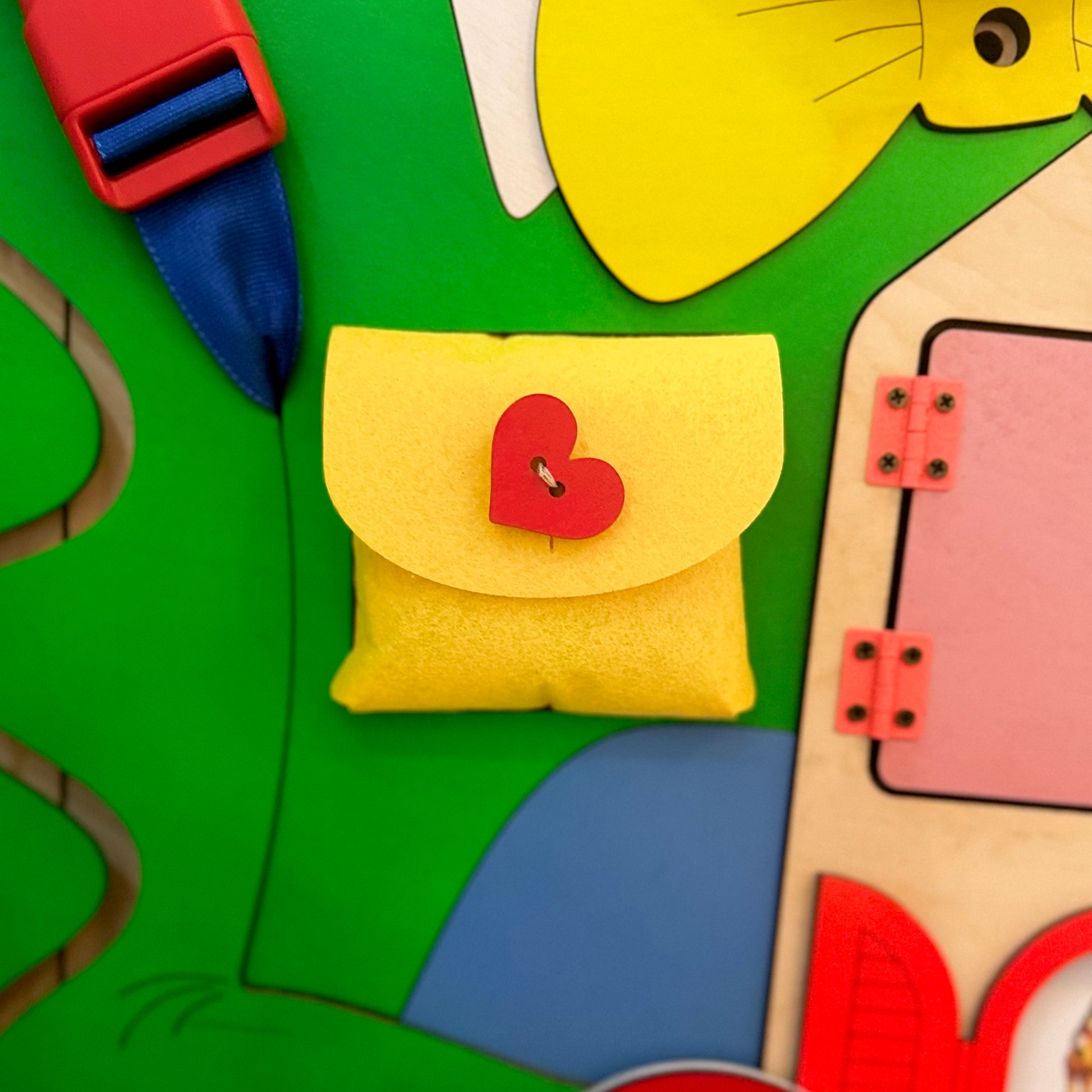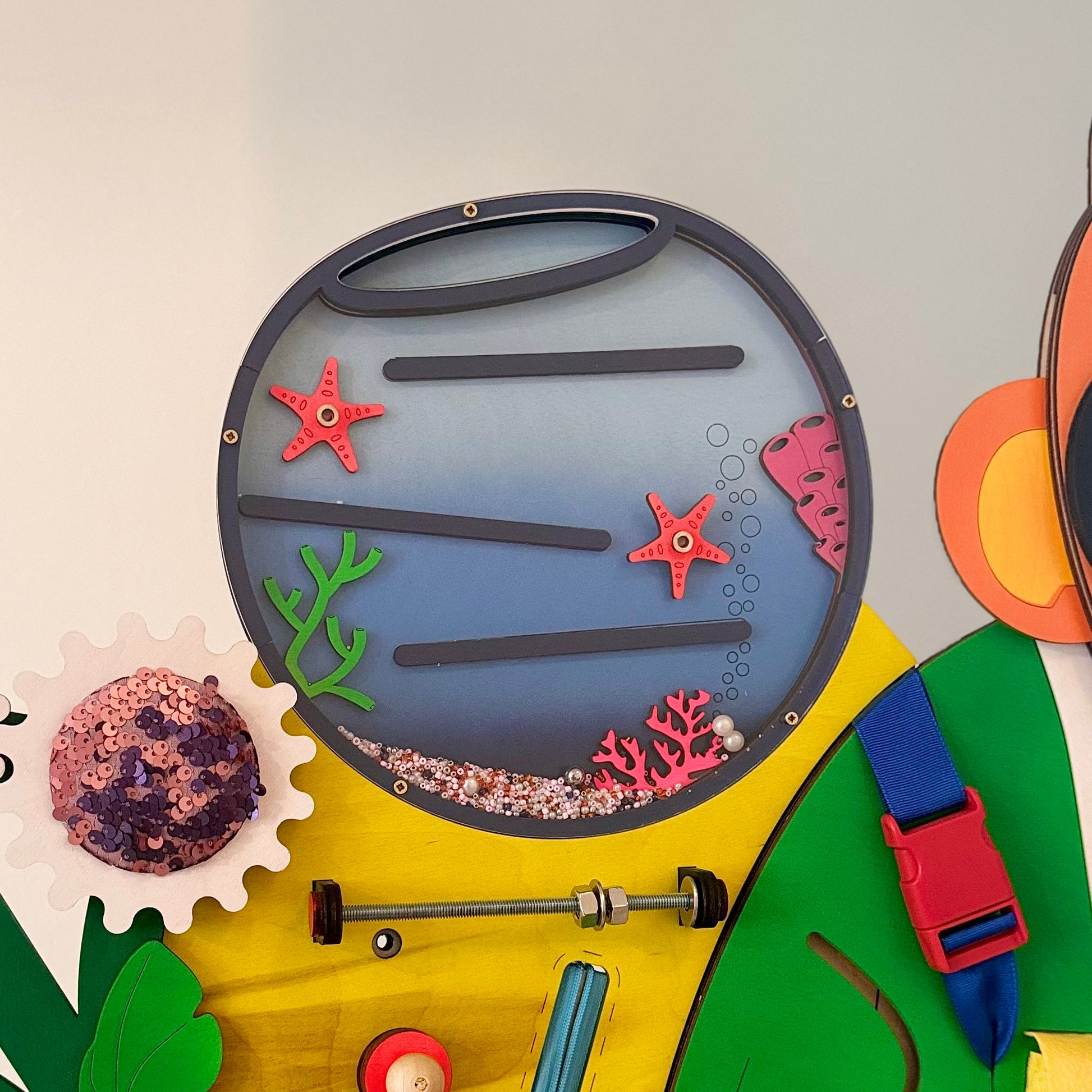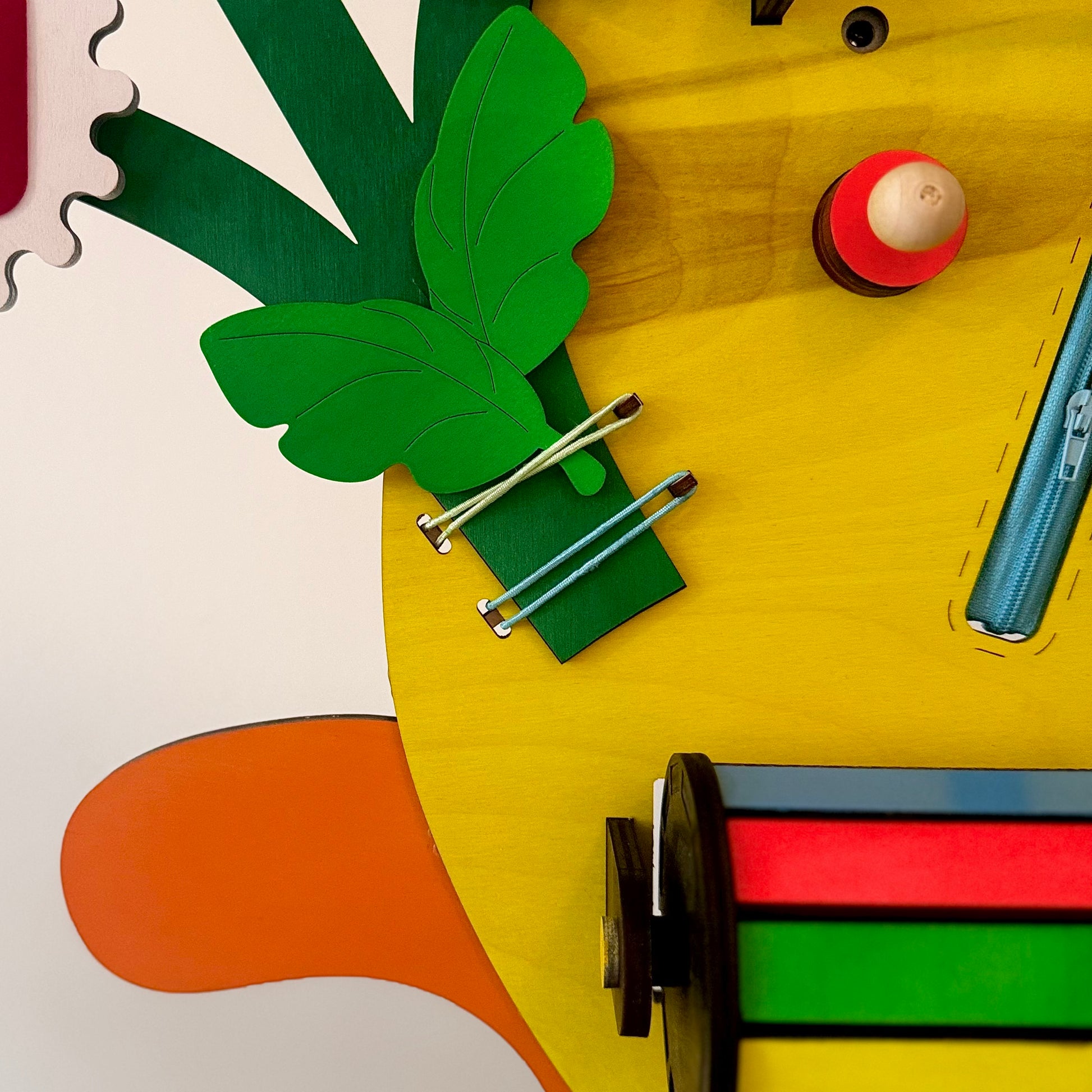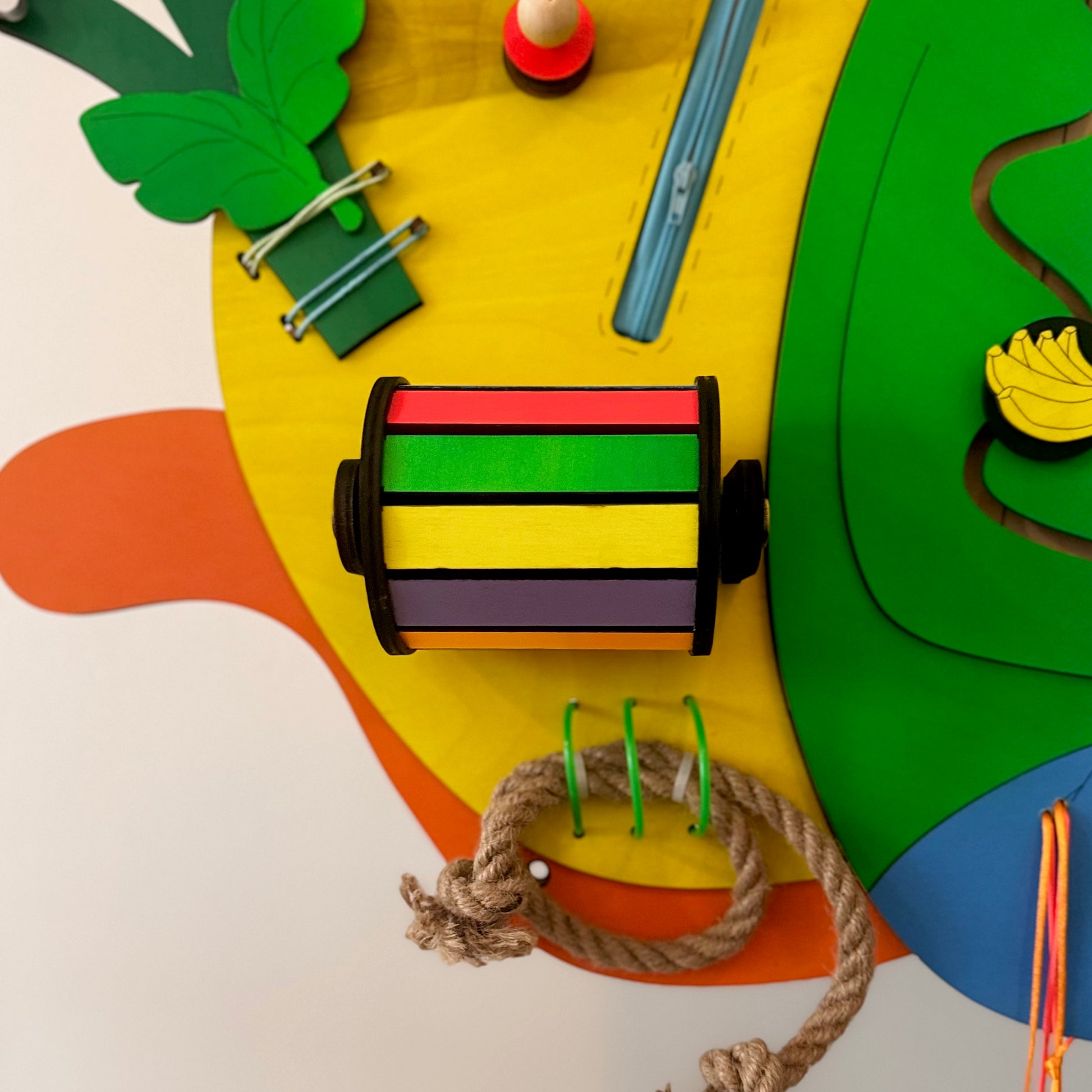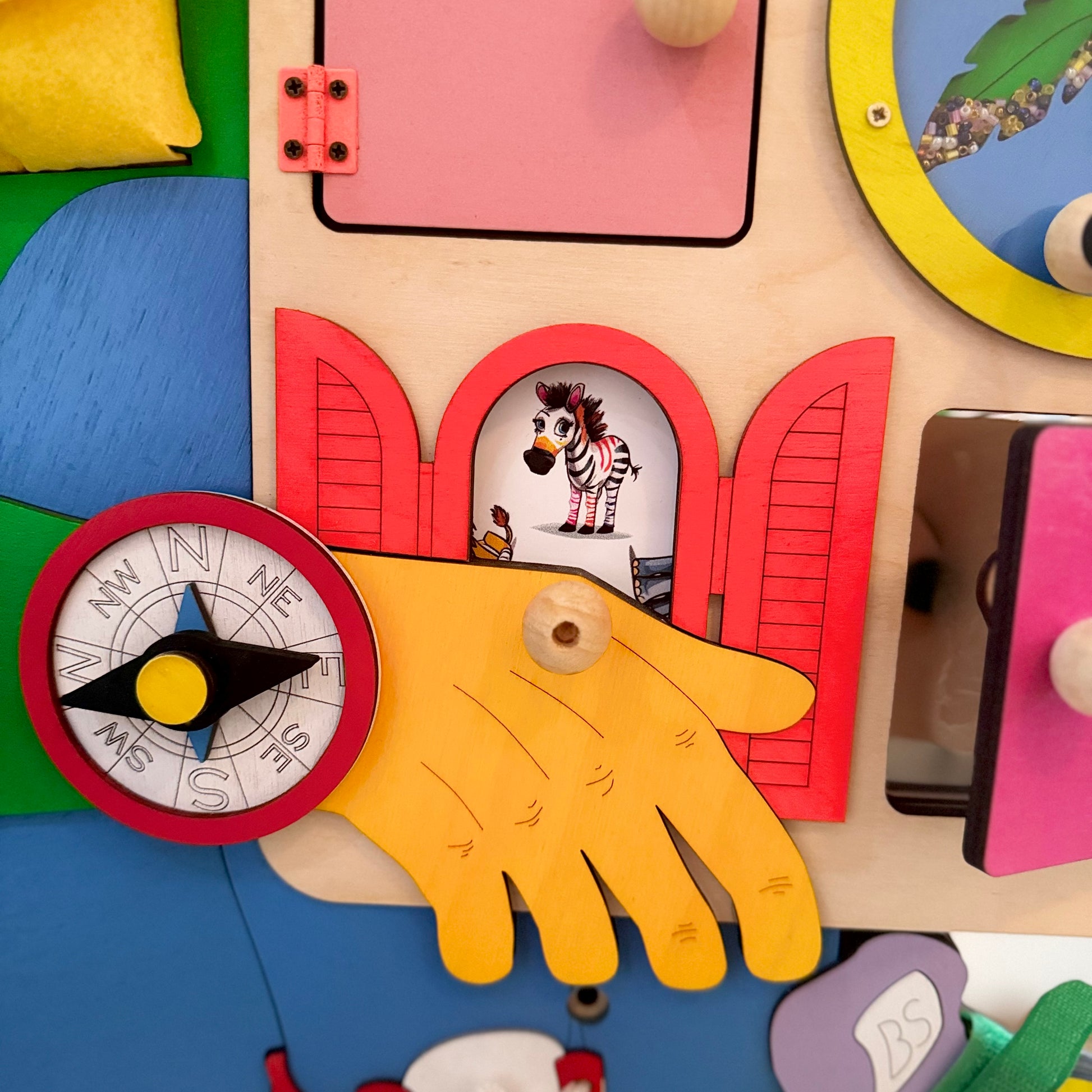 Edukativna tabla Montesori (busy board) u obliku veselog majmunčića, što odmah privlači pažnju dece svih uzrasta. Prilikom izrade, uzeli smo u obzir sve osnovne elemente za razvoj motorike, logičkog razmišljanja i mašte. Pristupili smo kreativnoj izradi kako bi bila ne samo korisna i zabavna, već i da se uklopi u svaki enterijer.
